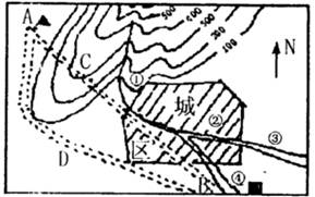 (1)若从A处修建铁路到B处,从经济效益与环境效益考虑,应选 线(A-C-B线,还是选A-D-B线)较合理。请简述你这样选择的依据。(3分)