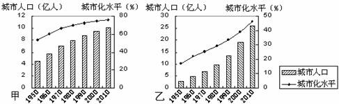 1.甲乙两图中表示发展中国家城市化的是 图,2000年发达国家城市人口比重为 。