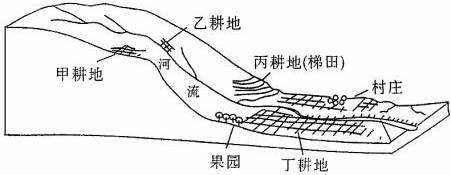 20.甲、乙、丙、丁四地段中,灌溉条件最好的地段是