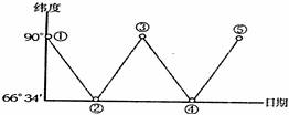 晨昏线与北半球纬线圈相切于H点,读H点纬度的年变化示意图,回答6--7题。