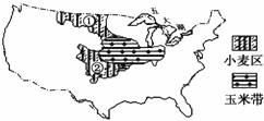 下图为“美国本土小麦区和玉米带分布示意图”。读图完成11-12题。