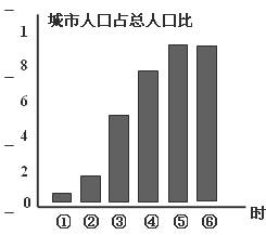 读某城市“城市人口占总人口比重变化图”(下图),回答13-14题。