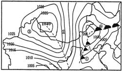 读某区域海平面等压线分布示意图,回答19-20题。