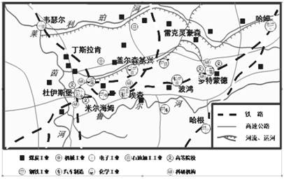 鲁尔区是典型的传统工业地域,被称为“德国工业的心脏”。20世纪50年代后,该地区经济逐步衰退。60年代后,鲁尔区实施综合整治,经济转向繁荣,成为一个社会经济结构协调、环境优美的地区。读图,回答 23-24题。