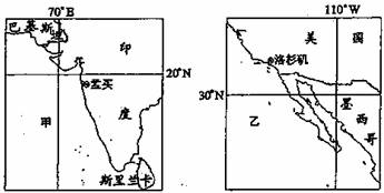 29.读以下两个临海国家的局部区域图,回答有关问题:(10分)