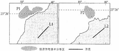 (4)以P1、P2处的经济作物为原料,可以发展的加工工业分别是 。(2分)