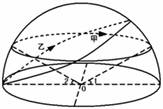 下图为北半球甲、乙两地某日“太阳视运动路线图”,底圈为地平圈,箭头为太阳视运动方向,∠1=∠2=22°,据此回答4-6题。