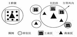 读下图某城市发展阶段图,回答13-14题