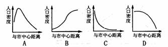 14.下图中能正确反映上图Ⅱ阶段城市人口密度与距离市中心的远近两者之间关系的是