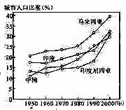 19.据图可知与其他三个国家同期相比,马来西亚城市化特征为 ( )