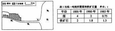 某钢铁厂于19世纪初建在M地;20世纪80年代将炼铁厂从M地迁至N地,炼钢厂仍留在M地,如左图所示。该钢铁厂所用的铁矿石一直依赖进口。图中河流可通航。结合表1,回答26-27题。