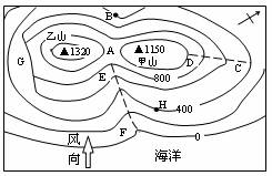 4.B点此时的温度为18℃,如果只考虑高度因素,那么甲峰与乙峰的温度分别为( )