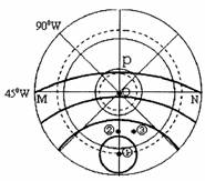 15.8月25日一架飞机从某地(112OE, 00 )日出时刻起飞,向西北方向飞到A 地降落时,正值A 地日出。若此日北京(40oN )昼长为13 小时,则飞机的飞行时间为