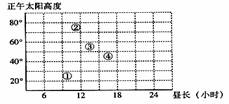 10.若①②经度相同,②③纬度相同,则此刻太阳高度