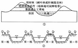(3)图B中①、②两种农业发展模式,分别适合于图A中的甲、乙、丙哪个地区?