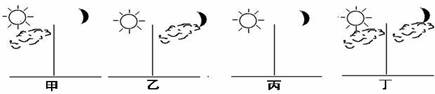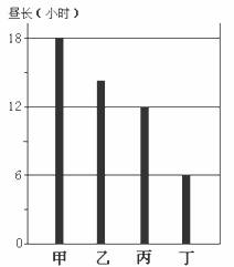 下图为同一日期甲、乙、丙、丁四个地点的昼长状况,据此回答1-3题
