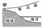 海陆差异会造成海洋与陆地不同季节的气压变化,读沿海地区近地面的等压面分布示意图,回答4-5题