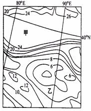 1.导致甲、乙两地气温差异的主要原因是 ( )