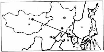 海域:甲___________ _海;乙__________海;丙____________海峡;丁_________海;