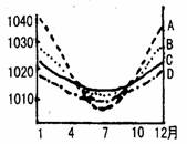 (3)(3分)下图曲线分别表示北京、平壤、乌兰巴托、东京四地年气压变化状况,表示乌兰巴托的是______ _,理由是___________________________________