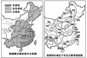 42.下图为《我国部分地区涝灾分布图》和《我国部分地区干旱总次数等值线图》,结合所学知识回答下列问题。(12分)