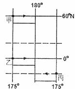 17.读下图,回答:甲、乙、丙三艘船同时出发驶向180°经线,而且同时到达,速度最快的是( )