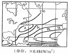 下图为某大洋部分海区年平均逐日从海洋输入大气的总热量分布图,读图回答25-28题。