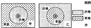 13.甲地以井为中心在草原上形成沙地,其原因可能是 ( )