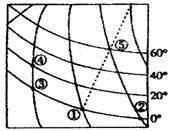 下图虚线是我国夏季高考期间的晨昏线,①点以西是西半球,①点与②③两点之间的最短距离是3330千米,据此回答23-25题。
