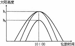 下图是北半球某地二分、二至日大阳高度日变化,读图回答26-28题。