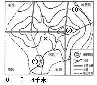 29.若要在图中的①②③④四处中选一处建大型仓储式超市,最好选在 ( )