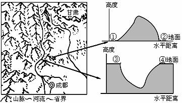 某地地理研究性学习小组进行野外考查,并绘制了某地地貌景观图及地形剖面图。读图回答3-4题。