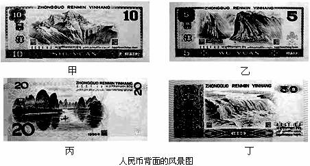 钱币被称为“国家名片”,人民币则是中国的名片。在已经发行的数套人民币中,我国的一些著名的风景被相继印上了它们的背面。读下图回答5-6题。
