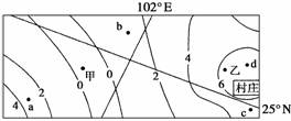 (3)图中甲地一月平均气温大约为 ℃,乙处地形可为 。