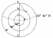 (3)图示日期,a地的昼长时间是 小时,f地的昼长时间是 小时。
