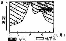 读“我国某地区土壤中空气月平均分布图”,完成7-8小题。
