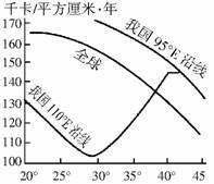 读“我国与全球同纬度太阳辐射总量对比图”。完成9-10题。