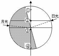 下图为某日太阳和月球分处地球两侧时光照简图,读图完成11-12题: