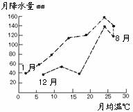 22.下图是某地12个月的气候资料,图中各点代表各月的气温及降水量,关于该气候类型叙述正确的是( )