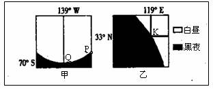 (1)求此时太阳直射点位置。(2)求此时K地昼长,并说明理由。