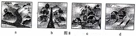 18.读“山区道路(a图、b图)与房屋建设(c图、d图)示意图”(图8),道路与房屋建设符合规划施工原则的是 ( )