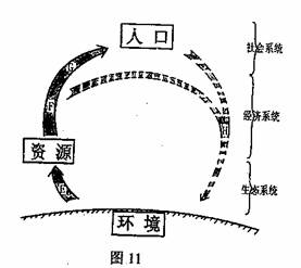读“环境、资源和人口关系示意图”(图11),回答23-25题。