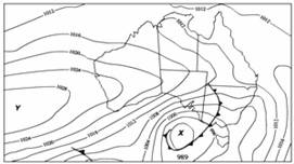 C.Y是反气旋,气流呈顺时针旋转 D.Y是高压,气流呈顺时针旋转