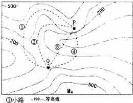 1.图中P、Q两点间的四条小路中,起伏最大的是