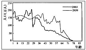 人口发展具有一定的规律性,研究人口年龄结构的特点,可以预测未来的人口问题。读下面“我国某省2003年与2030年(预测)人口年龄结构比较图”,回答15--16题: