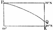 下图中弧PQ为晨昏线的一段,且与P点所在的纬线圈相切于P读图,回答23--24题。