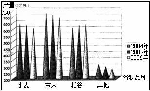 下图是2004-2006年世界各种谷物的产量变化图。读图回答17~18题。