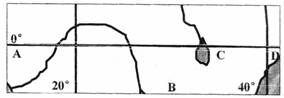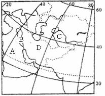 4.A、B、C、D四地中,降水量最多的是 ( )