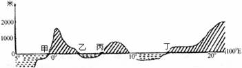 下图是沿100°E绘制的地形剖面图,横坐标为纬度,据图回答7-8题。