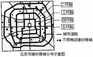 20.近年北京建材商城有向五环路外扩展的趋势,其主要原因是 ( )